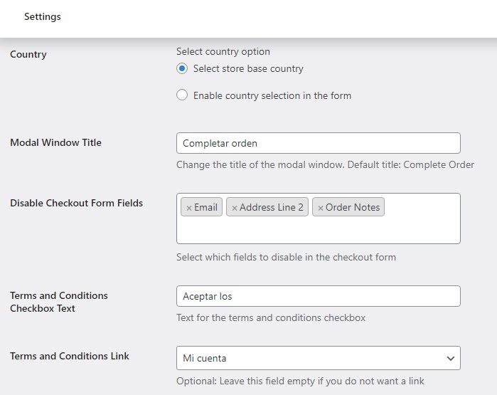 Personaliza la ventana modal, campos del formulario, textos, envíos, colores del botón de compra, entre otras opciones.